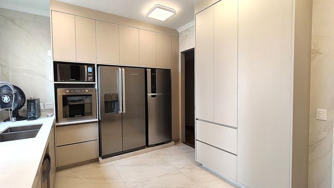 Marcenaria Premium: Armários planejados novos e de altíssimo padrão em todo o apartamento.