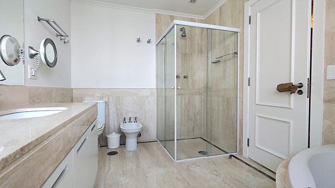 O imóvel no bairro Pinheiros possui 264 metros quadrados com 3 quartos sendo 3 suites e 5 banheiros , mobiliado , com ar condicionado em todos ambientes!!