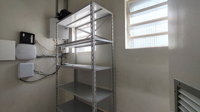 Pisos e Paredes: Provavelmente já possui piso de alta resistência e fácil lavagem (epóxi ou cerâmica industrial) e paredes azulejadas, o que é regra de ouro para manipulação de alimentos.Vão Livre: Os 250m² sem colunas facilitam muito a circulação de paletes e a montagem de bancadas de seleção ou embalagem.2. Logística e FluxoDoca: Essencial. No hortifruti, agilidade na carga e descarga é dinheiro. Evita o esforço manual excessivo e acelera o giro dos caminhões.Abertura para Elevador: Se o andar superior for usado para estoque de embalagens, escritório ou câmara seca, o elevador de carga é o que viabiliza a operação em dois níveis. Sem ele, o andar de cima vira "espaço morto".3. Preparação Térmica e SegurançaAr Condicionado: O fato de já ter a infraestrutura (elétrica e tubulações) é um alívio financeiro. Para hortifruti, manter a temperatura controlada é a diferença entre perder a carga ou manter o frescor (climatização de folhas, por exemplo).Sistema de Câmeras: Segurança é prioridade em áreas de transbordo de carga.4. Bem-estar (Banheiros com Banho)Isso é um diferencial para a equipe que chega de madrugada ou viaja longas distâncias. Ter um vestiário completo ajuda na retenção de bons funcionários e cumpre as normas de medicina.
