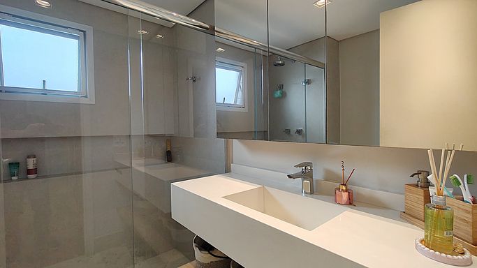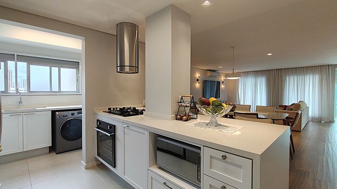 Destaque Interno: 4 dormitórios amplos, sendo 3 suítes. O acabamento em porcelanato premium percorre todos os ambientes, criando um visual moderno e integrado.