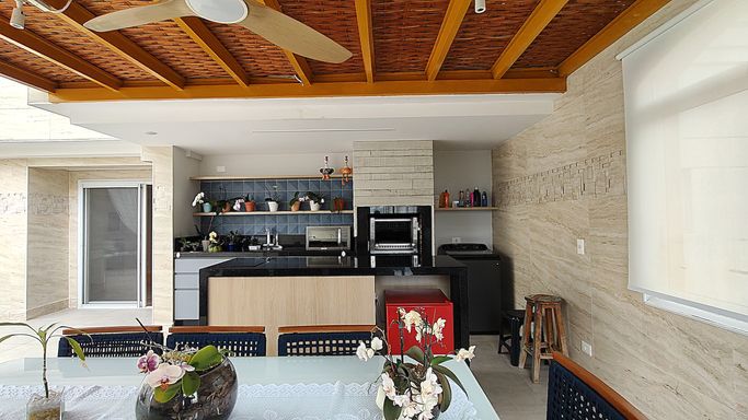 Espaços Gourmet e Festas: Ambientes decorados e equipados para receber convidados com a sofisticação de um lounge de luxo.
